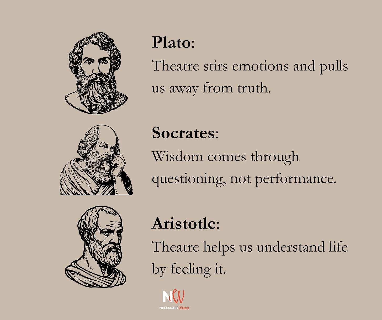 The question of theatre’s purpose is not new. It has echoed through centuries of aesthetic theory and moral philosophy. This essay has explored how three foundational thinkers—Plato, Socrates, and Aristotle—approached the question from markedly different perspectives, each illuminating distinct tensions between representation, emotion, and truth.