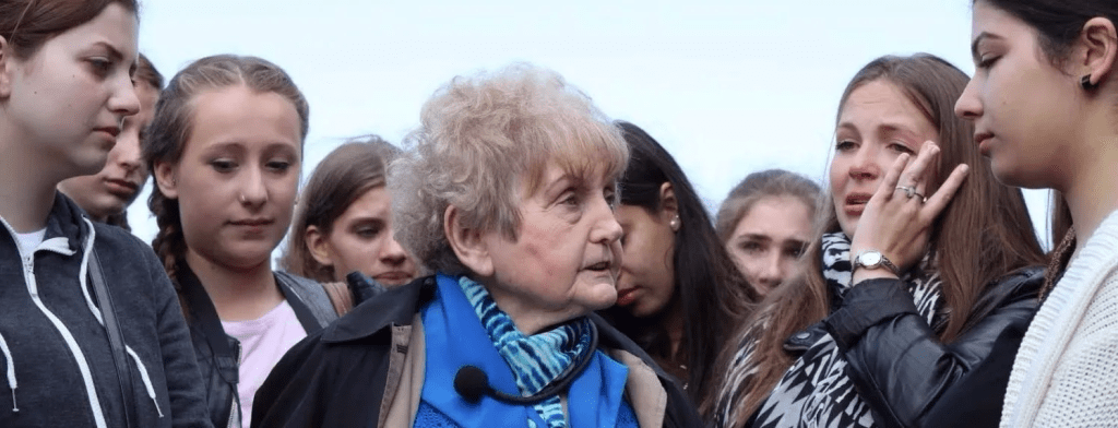 Photo credit: I am not sure who took this particular photo, but I was there when it was taken in 2013. We were standing inside Birkenau on the selection platform, near the cattle car that still stands there today. Eva was speaking to a small group that had gathered around her when this group of young German students stopped to listen from outside the circle. When Eva realized they were German, she invited them into the circle. It was then that the girls began to apologize to Eva on behalf of their ancestors. She told them they did not owe her an apology because they had done absolutely nothing wrong. She encouraged them to simply learn from their mistakes and to be light and love in the world. This was one of my favorite public moments with Eva.