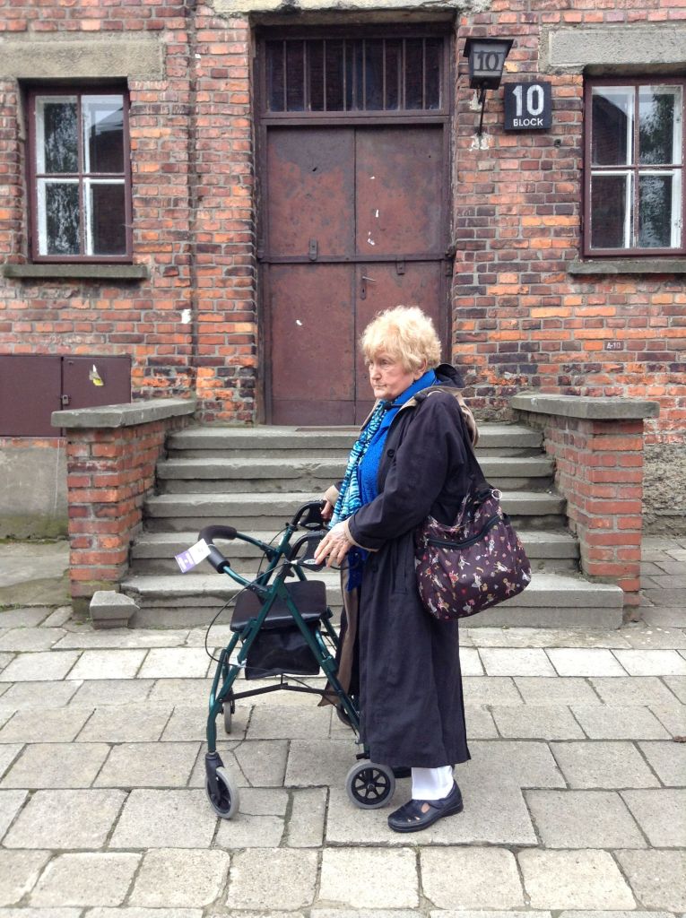 I took this photo of Eva Mozes Kor outside Block 10 in Auschwitz I.